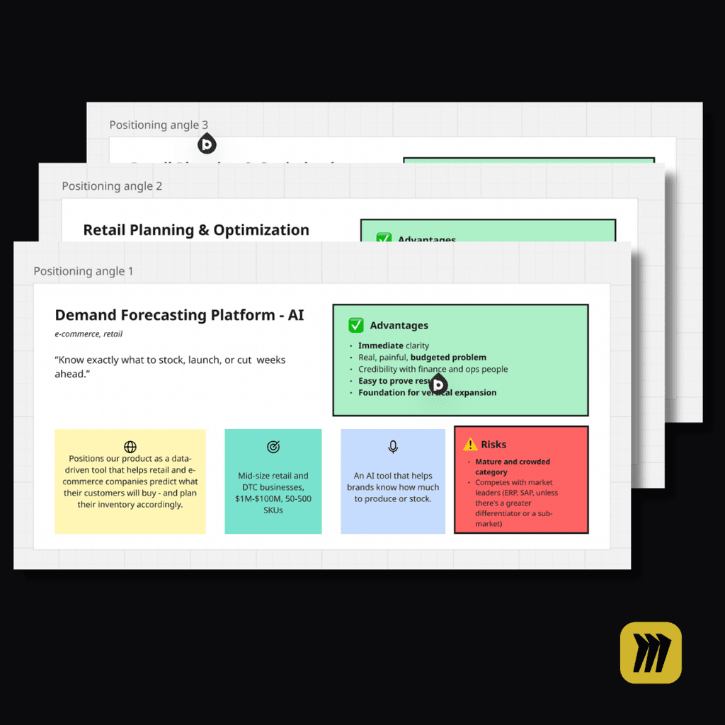 I’ll research your market, and find 3-5 positioning angles, where I believe you'll have the most success. Each one comes with opportunities and risks.