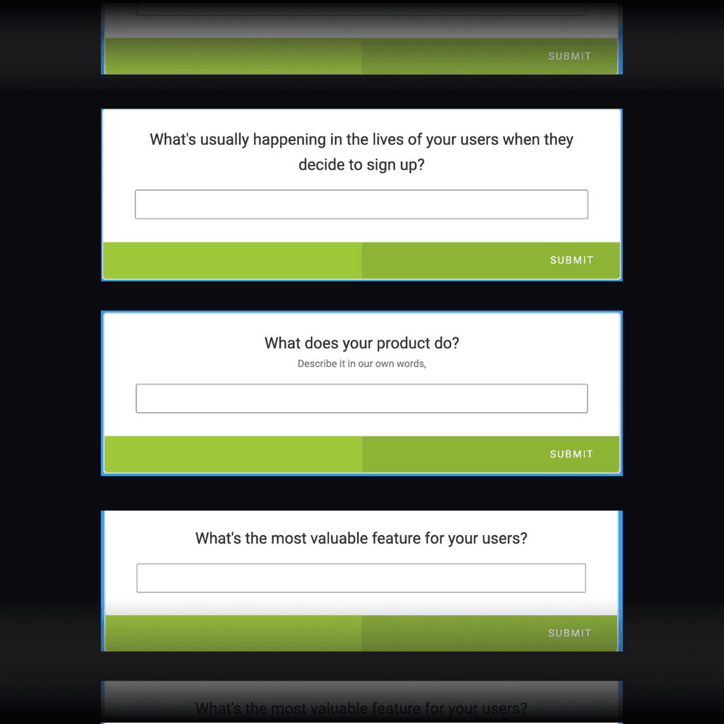 After you have completed the questionnaire I'd sent you, I’ll review all of your materials (sales call, website, decks, online presence) to understand your users and your position better.